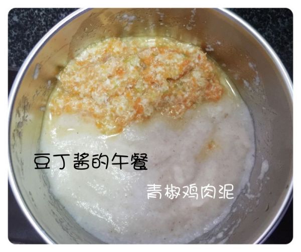 豆丁酱的午餐--美味青椒鸡肉泥(
