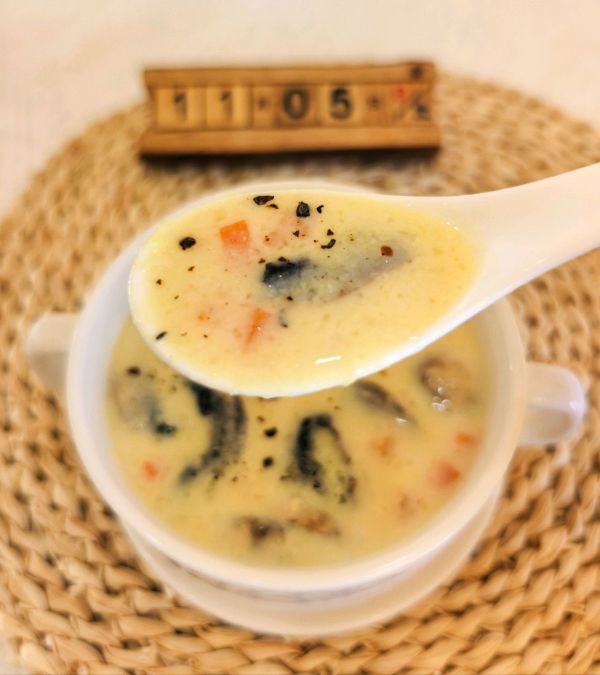 面包片蘸一下这个奶油汤,幸福感爆棚。