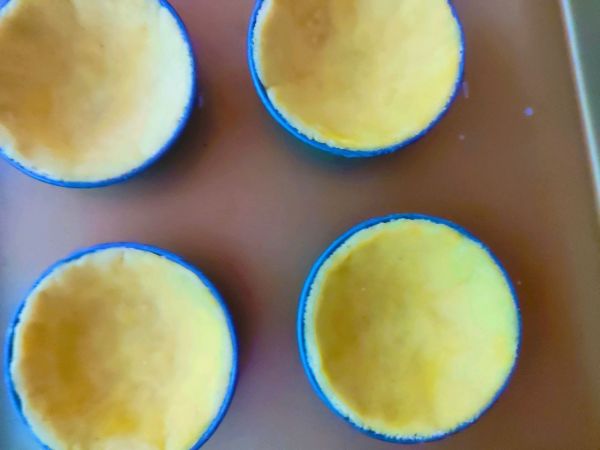 烤箱上下火预热好,再把冷冻好的塔皮拿出来