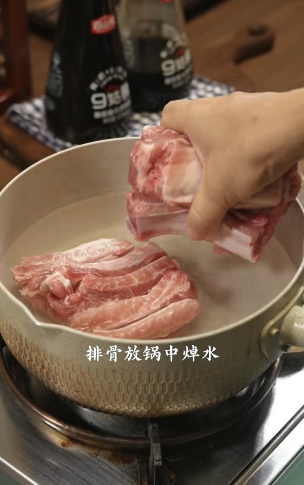 排骨放锅中焯水