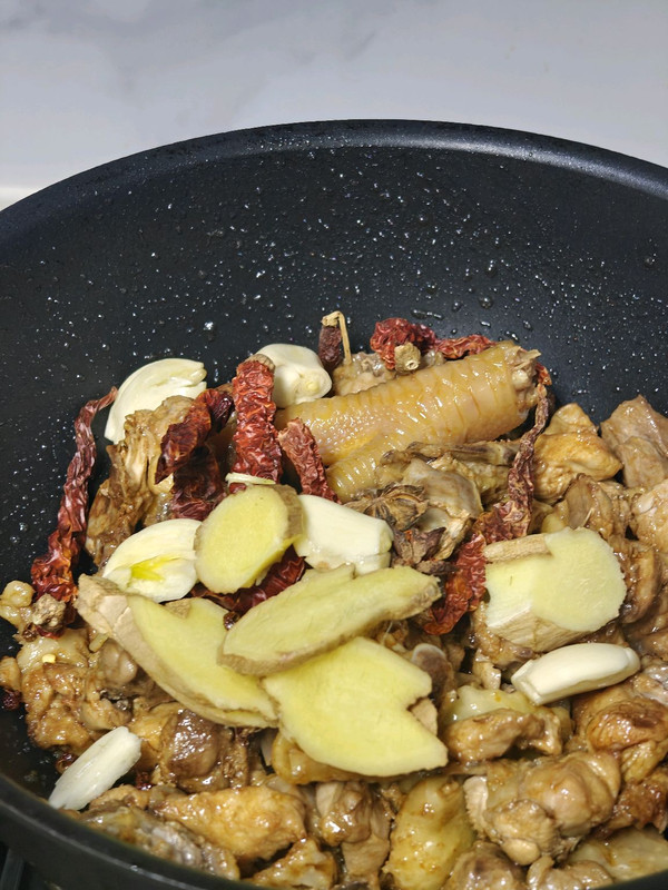 倒入准备好的鸡块,翻炒均匀